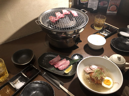 Various cuts of beef for grilling at the table, in a chic contemporary space with private rooms.
