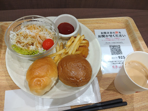 Read more9時から11時までモーニングが食べられるということで、仕事前に立ち寄りました。 揚げたてのフライドポテトとチキンナゲット、新鮮な野菜のサラダ、甘めな黒糖パンとバターロール、ほろ苦い香りながらスッキリとした後味でマイルドなコーヒー。 理想的な朝食がそこにありました。 ホテルの朝食の様な感じで、地元にいながら旅気分を味わえる。 しかも税込500円!! とてもオススメです。 イオン高松東は、サティだった頃からずっと変わらずにあるため、建物の老朽化は見られますが、古き良き豊かな日本の面影が感じられる場所です。 いつもお客さんがたくさんいるお店には、やっぱり人を引き付ける魅力がありますね。 さぬきテラスは学習スペースもあるため、ちょっとした仕事から資格の勉強、読書など...