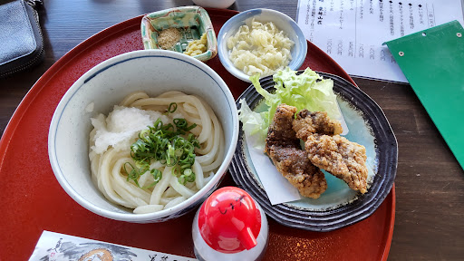 Read more地元テレビ、うどん遍路見て行きたくなりました。 オープン11時過ぎに初入店。駐車場は、ほぼ満車だったので先客もかなり居ました。見晴らしのいいカウンター席は、いっぱい。 奥の小上がりに座りました。 フルサービスのお店なので席で待ちます。 どうやらお冷、お茶はセルフみたい。メニュー持ったスタッフさんが注文聞きに来ました。 ネットで丼いっぱいの揚げ、きつねうどんを見てたのでそれを注文。 先客たちの注文のあとだったのでかなり待ちました。 まもなく着丼。予想以上にきれいなきつねうどん。別添えですりごま、生姜、天かすがついてます。 器の丼は、小ぶり。 厚いきつねが美味しい。 うどん小は、小さいなあ。近くの客は、特大注文してたので次...