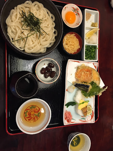 There is an English menu. You presumably already know udon is their speciality so you should really get it. They have cold and hot, with broth or dipping sauce, with kitsune tofu, etc. They also have sets which include two pieces of sushi and about 5 pieces of tempura - which, incidentally, was some of the best tempura I’ve had in japan. So crispy on the outside but not dry in the middle. Delicious. They were also able to accommodate my request for no shrimp tempura.