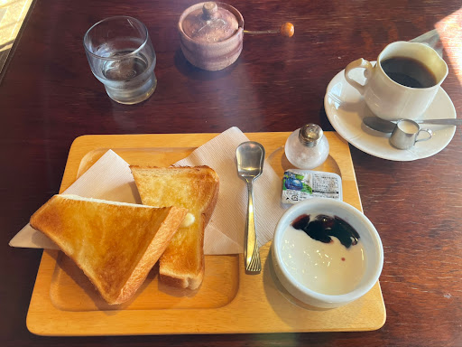 Read more7:00〜11:00までモーニングが食べられます。自家製ヨーグルトは粘りがあるタイプでとてもおいしいです。チーズケーキなどスイーツや甘酒も店主マダムの自家製だそうです。コーヒーは飲みやすくおいしいです。 午前10時台に伺った時は、他のお客様が帰った直後や常連さんが一人いたくらいで、そんなに混んでる感じではない分、静かでゆったりとした時間を過ごせます。 メニューは煎茶、健康茶、コーヒーぜんざいやお餅トーストなど他にはないメニューが数多くあり、通い...