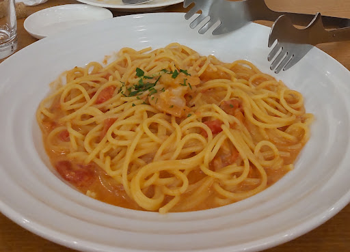 2024/6再訪問。 夫と2人で。駐車場は道を挟んで店舗の隣に15台以上はあったと思います。日曜日の昼過ぎにパスタランチを注文。タイミングにも依ると思うけど、提供時間は短めだとおもいます。 熱々の美味しいパスタをハフハフ言いながら食べられる幸せ♪キノコのチーズパスタ、具材たっぷりでキノコの風味がしっかり感じられて美味しかったです。パスタランチのコスパが良すぎると個人的には思います。 2024/3再訪問。 2人ともパスタランチを注文。「エビバジル」と「牡蠣とほうれん草のクリームパスタ」。エビバジルは、エビはプリッとしていてバジルの風味もしっかり感じられて美味しかった。牡蠣は中がクリーミーで絶妙な火の通り方で、夫が喜んでたべてました♪セットのドリンクに焼き菓子が付いてきます♪ 2023/11訪問。※2回目 今回はパスタランチを注文。ランチは11時から14時(ラストオーダー)まで。 20種類あるパスタの中から私は「トマトバジルチーズ」、夫は「ボンゴレビアンコ」を注文。トマトもバジルもフレッシュさが感じられて見た目も色鮮やか。夫のボンゴレビアンコは、あさりがふっくらしていて、味付けはシンプルなのに旨味が感じられました。 パスタ、サラダ、パン、ドリンクのセットで¥1,300はどう考えてもお得! 人気店なのでお客さんは多いけど、店員さんがテキパキ動いているのでスムーズでした。