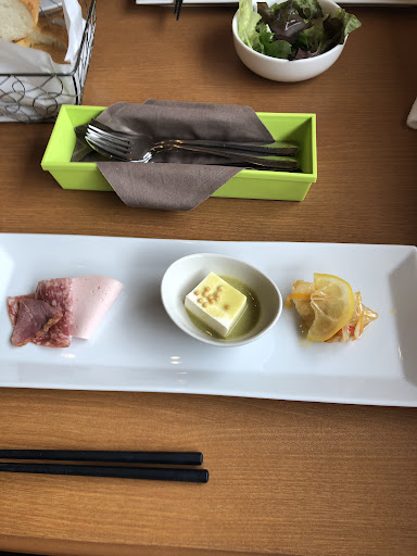 Read more評価良いので妻同伴で訪問、平日水曜日12:30到着、駐車場はお店横道路向かいに20台、トイレは男女別ウォシュレット、店内は綺麗で音楽が流れ、先にお冷とおしぼりが出ました。お姉さんの応対、2人椅子席6つ、4人椅子席6つ、カウンター椅子席8つ、パスタランチは20種類のパスタから選べます。あじ豚ゆずこしょう1300円を、妻はカキベーコン1300円を、飲み物付きなのでアイスティにしてオーダーしました。前菜サラダはミニサラダでは無くちゃんとしたサラダです、パスタはどれも美味しいですね、お箸も提供されていて助かりました。アイスティはミニサイズでは無くちゃんとしたグラスでの提供、デザートとしてお菓子も1個付いて来ました、1...