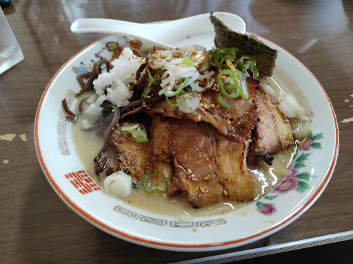 Read more初来店… なにか、重苦しい雰囲気に様子を 伺いつつあぶり肉ラーメンを 注文しました。 意外と気さくな店主さんって感じです。 到着したラーメンを見て… 写真で見るより実物の肉の多さに 圧倒される。 刻み玉ねぎ、キクラゲ、ネギ、ゴマ チャーシュー… 値段からすると、ものすごい トッピングです。 にしても、チャーシューの存在感に 全てがふっ飛ぶ。。。。 スープは秀でた感じは無いが よくある美味しい方の豚骨スープですね。 麺は、中太ストレート! 茹で加減も良く食感も良い! チャーシュー…… ひとくち目は、しっかりとした 甘辛い味付けのされた 超肉厚チャーシュー! 口溶け良く炊かれております! 炙った香ばしさがプラスされ 溶け出す脂身と合わさり。 めっちゃ!!うめぇえ!!! です!! が、40過ぎた私には2枚が 限界かw ホンットに美味しいですよ!!