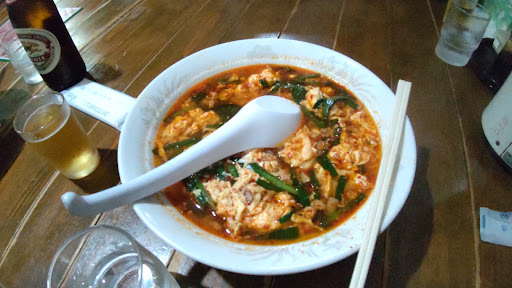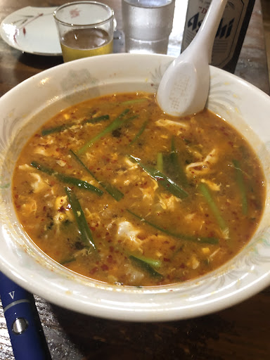 Read more私は◯もとの辛麺は5カラで丁度良いが、ココの辛麺は2カラでもちょっと辛いくらい。 初来店の人は用心した方が良いと思う。 値段は1000円以上するが、麺の量が1.5倍ほど有る ニンニクもゴロゴロ、たまごとニラもタップリでお腹も良い感じに。 夜は居酒屋のメニューもあって、味噌ダレをつけて食べる生センマイが美味しい。 ただ、昼間はメチャ汚く感じるだろうし、あぶらの匂いがすごい笑 昼間は店主が1人でやってるのでコツがいる。 まず入店して、先客が居た場合はラーメンが出てたら声かける。 ラーメンが無く、奥で調理中なら店主が気付くまで席で待つ。 こちらから声掛けても、ちょっと待っといて!って言われる笑 お水なども持って来てくれるので、気長に待つ事をオススメします。 会計もタイミング見てやらないといつまでも待つ事になる笑 味は良いし、店主も良い人なのでオススメ。 駐車場は3台分しか無い。地元だと止めれる所が他に有るのを知ってるので良いけれど、わからない方...