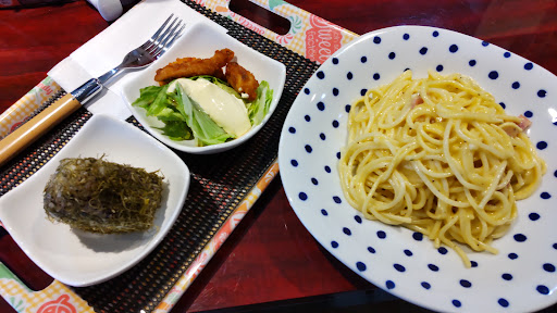 ランチは業務用の物を出していますが仕入れ先が良いのかとても美味しいです (特にカルボナーラとナポリタンはモチモチの食感でした👍) 物価高に伴い少々値上げしました ランチに付いているサラダやデザートに付いては画像の通りにならない場合があります 基本的にランチ1品+サラダ類+飲み物でワンセットでした (ナポリタンの画像もあったのですか誤って消し...