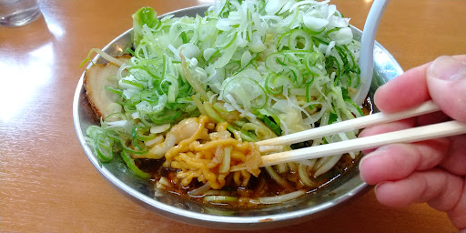 Read more背脂しょうが🍜 キレのある醤油スープとしっかりのラードですが、シャキシャキの野菜としょうがで意外とサッパリいけます。中太麺と絡む野菜でガシガシ食ってけますわ😁