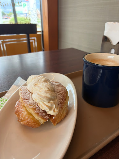 先日、かなり久しぶりにお邪魔しました。 昼食を食べ損ねたので、軽く何か食べようかと。 今は、ほとんどドーナツしかないのですね。(その昔、パスタランチとかあったんですけど) ランチ用のセットはあるにはあったのですが、カレーパンとか、パイなどから一つ選び、ドリンクも数種類から一つ選び、そのセットが580円?だったか。あまり、お得ではなさそうです。 あとは、ドーナツセットがありました。これは、200円以下のドーナツ一つとホットコーヒー(それ以外だとセットにはなりません!)のセットで490円。これも、あまりお得感を感じられません。 結局、普通にドーナツとドリンクを注文した次第。 あと、たまたまこの日だけかもしれないのですが、スタッフさんの愛想がよくなくて…残念でした。