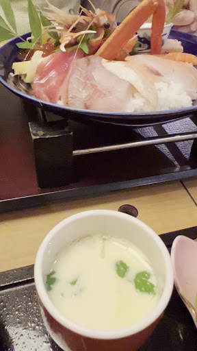 Read more連休中日で、氷見まで来たけどどこも断られ。場所を変えてみようとたどり着いたのがこちらでした。 席は空いているのですが、料理が追い付かないので、少しお待たせしてしまいますが…と事前に伝えられ、ソーシャルディスタンスで座るところが見当たらなかったので、立って待っていたところ、空いているところまでわざわざ案内してくれました。 待ちながら、メニューを見せてもらい、席に着いたらすぐに注文したのですが、メニューの内容を説明してくれて、単品も頼むようであれば、こちらにの方がお得かと思いますが…とお店の利益ではなく、こちら側に沿った提供をしてくれたことに感動。 白海老があるかないかで、だいぶお値段に差はありますが、海鮮高岡丼は白海老とボタン海老・ウニ・イクラ・太刀魚・つぶ貝?・イカ・マグロ・サーモン(季節によって変わります)が乗っかってあら汁とセットで¥2500。それに茶碗蒸しや小鉢・フルーツ等が付くと¥3000でした。ネタは厚く食べ堪えがあり、酢飯はモチモチ食感で大満足でした。 それ以外にも、氷見うどん¥680を注文しましたが、こちらもツルツルのど越し滑らかで本当に美味しく頂きました。 何より。店長さんの一つ一つの所作言動には、おもてなしの心が伝わり、少々お高くても、また行きたいと思うお...