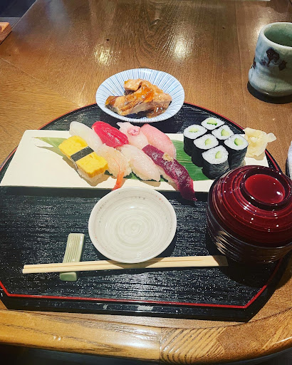 本日は寿司ランチをいただいた。 どのネタもとても新鮮で脂も多く、いい魚を使っているなというのが窺えた。イカがとても甘く、イカ好きの自分はとても満足した。そしてやはり、この時期の鰤はとても美味だった。 ランチについてくる煮付けも、しっかり味がしみていて柔らかく、美味しかった。汁物は味噌汁ではなく、お吸い物だったが、個人的にはお吸い物の方が好きなのでよかった。 コーヒーとデザートもついており、食後に一服つけるのは良い。今日のデザートは紅茶ムースとバニラアイスで、甘さ控えめでコーヒーと一緒に食べると丁度良かった。 寿司ランチ以外にも、ちらしランチと刺身ランチがあるようなので、次回いった時には...