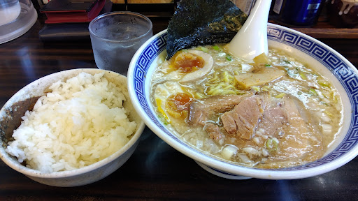 Read more新高岡駅北口出て右手側(青看板画像を参照)。非積雪で徒歩約4分。画像は「煮卵らーめん大盛」。入口左側に券売機。一人でもカウンターあり。手荷物用BOXあり。醤油豚骨で味が調整可能。豚骨苦手気味な私でも濃さ普通・脂少なめで美味しく頂きました。 混んでますが店舗前に駐車場あります。 It is located along the road a few minutes walk to the right from the north exit of Shin-Takaoka Station. Note that there is no English signage, but you can see it in the picture. After entering the entrance, buy a meal ticket from the ticket machine on the left, and the waiter will show you...