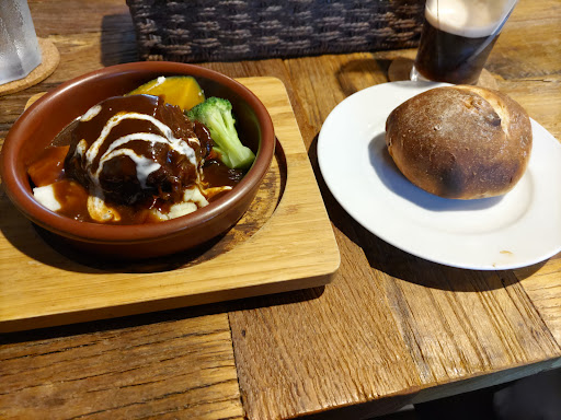 Read moreランチで美味しいハンバーグのお店って検索して入ったが、落ち着いた客席とギネスビールがサーバーで置いてあるのを見て思わずランチは無しでビールと一品で昼から飲んでしまった スタッフのいいタイミングでのオーダーや下げ物 お料理も美味しくて 唐揚げは薄皮なのにサックサクで中はジューシー、ホホ肉のビーフシチューはプルンとしてフォークを刺したら崩れる位柔らかでギネスビールの濃いシチューが大人な味で美味しい パスタも生麺でしつこくなく美味しい どれもこれも美味しくて、お酒も種類が多くてモヒートのミントの爽やかさがたまらん😆 今度は夜も行ってみたいと...