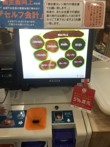 Read moreいつ行っても人がいっぱいの超人気のパン屋さん! 食パンが超人気で、物凄い数が毎日売られています。惣菜パンも美味しく、他所に比べてかなり安い、昭和の時代のパン屋さんの価格設定程度です。美味しくて安いというのは何より嬉しい事ですね。 また1階で買ったパンは2階の喫茶店に持ち込んで食べる事が可能です。その際、喫茶メニューを1人最低1点注文する必要がある事ご注意ください。 また、少し前にセルフレジが導入されました。ただのセルフレジではありません。トレーに置いたパンを撮影し、画像解析して商品名をタグ付けします。誤認識があったもののみ、店員さんが修正するというスタイルです。AIのテクノロジーがこんなところまで浸透しているとは! レジは常に列ができているのでらこの刷新にお店の方が慣れられて、混雑が緩和...