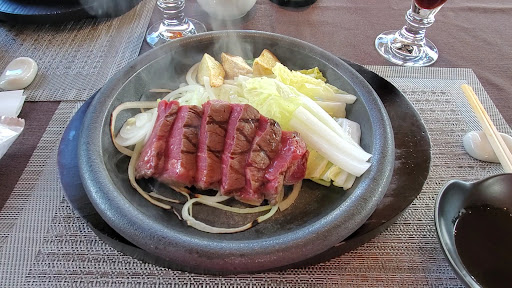 2020年 美味しかったです!前菜のハムと付け合わせの玉ねぎに美味しいドレッシング、温かいスープ、メインのステーキ、付け合わせのお野菜、ご飯からコーヒーに至るまで、全て美味しいです😆🎵🎵三田屋さんのピルスナーも秀逸でした‼️...