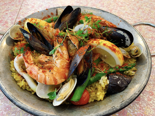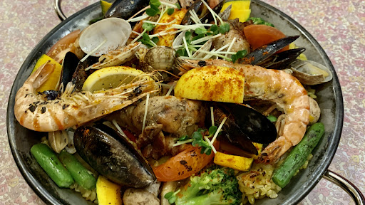 パエリアと自家焙煎コーヒーのお店と謳っておられます。 私たちは初めてで、量が多いのか少ないのかも分からないので、取り敢えず2人で海鮮のパエリア2人前と、タパス盛り合わせ1人前を頼みました。