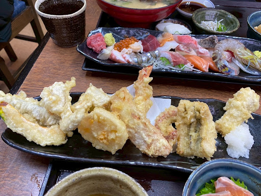 The sashimi is thick-cut and incredibly fresh. The assorted sashimi plate is especially impressive, almost like a feast on a boat. Tempura is light and crispy, and the miso soup comes with a generous portion of fish head for deep umami flavor. Every set meal is satisfying and great value for the price.