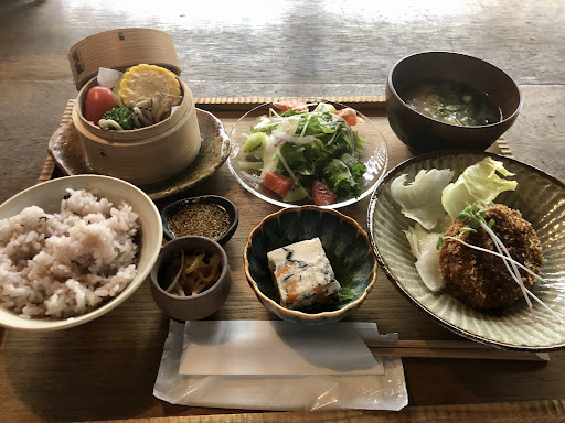 Read more正直に書きます。 ここのカフェ屋さん、いやふるカフェ屋さんというべきでしょう。は素晴らしいです。 まず店内の内装や雰囲気。古い屋敷をアレンジし現代にカフェ屋として蘇らせています。その雰囲気はどこか懐かしく、店内に入った瞬間別の空間へと誘ってくれます。またあの急な階段が懐かしいです。ある人がおばあちゃんの家の階段という風に表現していました。まさにおじいちゃん、おばあちゃんの家にいるような雰囲気を味わうことができます。 またランチに関しては1250円で味わうことができます。ちょっと贅沢かもしれませんが,それだけの価値があると感じられました。一つ一つの料理が丁寧に作られており、特にオススメなのが豆腐や大豆、ひじきなどを混ぜたテリーヌ。出汁と共に固めていると思います。味はとても優しく、ですがその出汁がそれぞれの食べ物の味を引き出しているように思えました。 また味噌汁も出汁がよく聞いており、野菜もたっぷりでたまりません。 店内の空間を楽しむことができるうえ、さらにこだわった器に盛られた美味しいご飯を食べることができるなんて、最高でした。 食後にはドリンクもつきます。こちらもこだわった陶器の器と共に出されます。もう最高でした。 是非とも一度、カフェやランチに訪れてみるとどうでしょうか? またインスタもやっているそうでcocageと調べると出ると思います。そちらで確認することもできるのでしてみてくださいね。