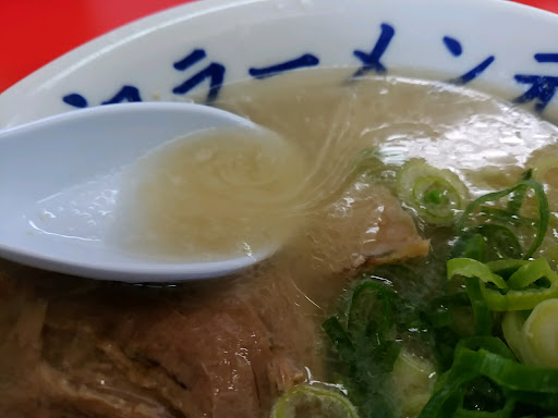 めんめんがあった場所に新しいラーメン店が出来たので行きました。 午後1時前でしたが、店に入ると他の客はおらず私1人だったので「これは、ヤバい店かな??」と考えましたが、せっかくの初来店やしできるだけ食おう!と思い券売機でトンコツラーメン、チャーシュー丼、高菜、替え肉、替玉を買いカウンター席に着席しました。 店員さんにトンコツラーメン、チャーシュー丼の券を渡し1番固い麺で注文。すぐに出来上がり食す。 ん〜??香り、脂共に豚骨感が感じられず、〇〇コックのワンタン麺っぽい味、麺の1番固いのは失敗かなと思い、サッサと食って替玉と替え肉、高菜券を店員さんに渡して次は麺の固さは普通で行きました。 高菜を入れてもパンチ力が足らない。麺は妥協出来る感じ。替え肉も微妙。 店内に書いてある触れ書きに、元祖長浜屋で修行した。?!?。!?。云々と書いてありましたが、あそこで食ったラーメンとは全く違っていました。 私が来店後他のお客さんが来られたのでラーメンを作る様子を見ると、スープに謎の白い粉を大さじ1放り込み、そこに麺、肉、ネギを入れて完成みたいな感じでした。 あの白い粉は????豚骨感がない、パンチ力がない、客が居ないのに納得。 ここは2号店で、元祖長浜家で修行された本物の職人さんは網干の本店にいらっしゃるようなので、そちらに行け...