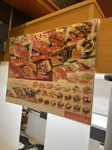 Read more月に3回程度利用します。 たまに形が崩れていたり味のバラつきがあると感じますが、安価な回転寿司なのでそこまで求めるのは酷だと思います。何人かのレビューにあるような酷いものには当たってません。 テーブル席メインの配置でカウンターは少ししかないので一人で行っても大抵テーブル席に案内されます。タッチパネルも昔はレーン上にありましたがいつの間にか外れるタイプになっており注文しやすくなってます。 スマホ注文にも対応するし、スマホ注文するとサイドメニューでも抽選が回せるのでお得です。平日は予約しなくても待たずに入れますが月末や日曜日は大抵混んでて予約は必須です。 15時や21時を過ぎると品切れで注文できなくなる物が増えるので、食べたい物は早めに注文しましょう。 あとは普通のくら寿司で、イベント景品が配布されたり特選のネタがあるときも混んでます。 同じ敷地に中華、スーパー、近くに食堂やハンバーガー屋もあるの...