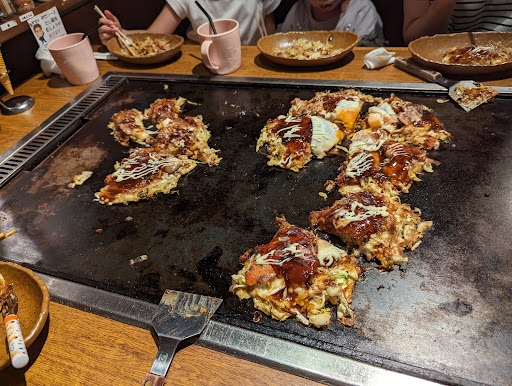 Read moreついこないだ、日曜のお昼に家族で伺いました。赤ちゃんがいるのでお座敷を希望したところ「どうしても座敷がいいですか?スタッフが少ないので座敷はオーダーが通りにくかったり、届くのが遅くなるかもしれませんが。それでも座敷がいいですか?」と言われました。それでも座敷がいいとお伝えするとお座敷にしてくれましたが、本当に呼んでも来ない。10分ほど経ってから来てくれました。お好み焼き2枚と明石焼きを頼みましたが、お好み焼き食べ終わって10分ほど経っても明石焼きが来ない。イライラした旦那が2回呼び鈴を鳴らしましたが、それから更に5分ほど待ち、やっと来てくれました。しかし「お待たせました」ではなく、「は〜い🥱」と言ってきた店員。案内から注文、配膳全てこの店員さんでしたが対応悪すぎます。帽子に初心者マークついてたので、まぁまぁ・・・と自分に言い聞かせましたが、かなりおばさんでしたし、店の指導だけの問題ではないような。。そもそも何で座敷はオーダーが通りにくいのか理解できませんが。別に近いお店でもないので、もう行く事はないですね。料理の味は至って普通です。お店の雰囲気は昭和っぽくて楽しいです...