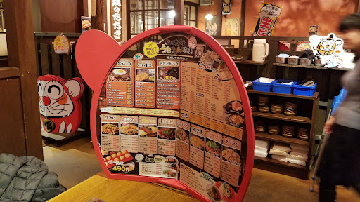 The restaurant has a nostalgic renovation. It looks like a store from the Showa era with some traditional Japanese kid snacks and movie posters etc.