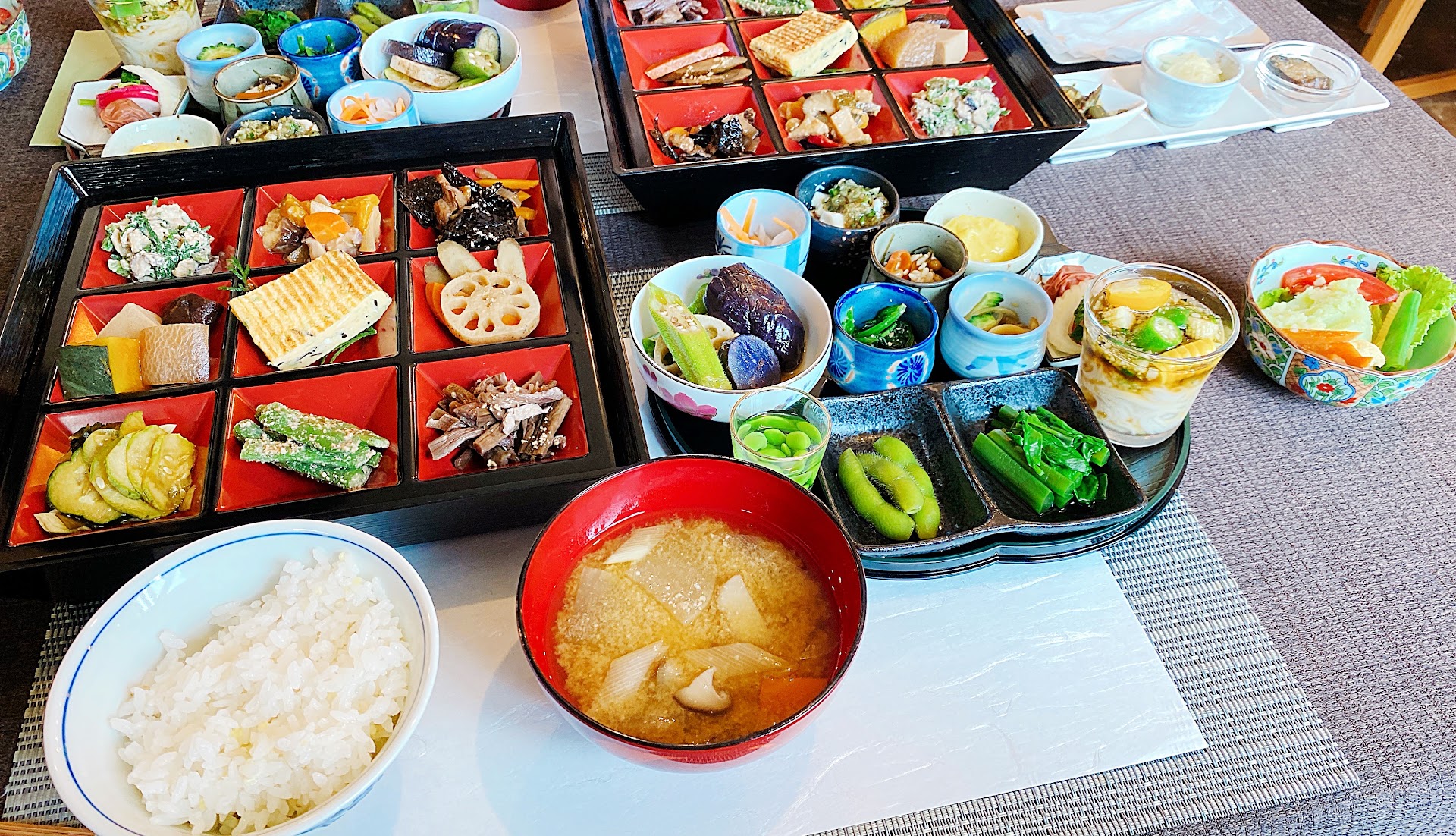 ということで、欲張っての 夏の里山『旬菜御膳+焼き魚』を注文。 店名の名の通り、オーナーシェフは地元の現役農家さんで、無農薬にこだわり、お米や野菜などを作られているそうです。 収穫した食材で、完璧なまでに無農薬の野菜のみで調理をし、それでいて人工調味料など一切使わない調理法での料理を提供する徹底ぶり!! 出来上がった料理が運ばれてきて、その品数の多さと華やかさに感心。 肝心な料理の味はというと、どれをとっても野菜の本来の旨味が活かされつつ、そして優しい味に仕上げた心のこもった料理を残すところなく、オマケに普段お代わりをしない白米さえもお代わりししました(勿論これもオーナーさん宅の畑で作られたお米だとのこと)… 最後まで美味しく戴きました。