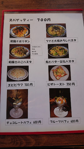 Read more高得点が気になり訪問、平屋建ての静かで高い天井も相まってとても落ち着けます。年配のご夫婦が営まれ、口コミ通り物腰の柔らかい奥様が穏やかに迎えてくれます。 店内はボックス席の様に仕切られ、とても広くリラックス出来ます。 驚いたのは価格、ほとんどのメニューが税込700円でドリンクと小さなトスサラダセットが+150円。妻はフレッシュトマトとベーコンのピザ、私は和風キノコパスタをチョイス。ピザ一切れをチョイスして両方の味が楽しめました。ピザ生地がしっかりしてとても美味しい、パスタはぶなしめじとベーコンにピーマンの細切りが、塩味で此又美味‼️奥深い味は何だろう?醤油か?時がゆっくりと流れている様に感じます。初めての体験⁉️ 食事をして心が癒されたのは何故なのか?