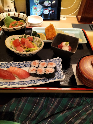7月1日 レディースセットと悩みましたが、寿司うどん御膳にしました。 お寿司 美味しかったです。 ちょっとイカが厚切りで歯ごたえがありすぎたのと、 白身がなんの魚か分からなくて、メニューを見て探したら、カンパチらしかったのですが、白身という感じで脂はなかったです。