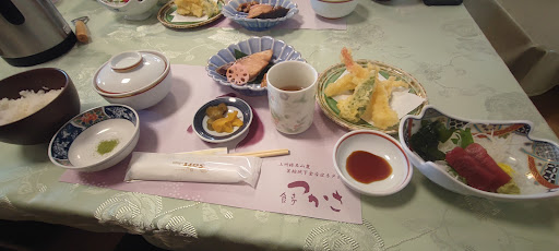 和食料理のお店。 残念ながら美味しくなかったです。 見た目は豪華でした。 しかし、里芋の味はまったくなく、筍は硬く味はしなかったです。 しょっぱいものが好きなわけではないですが、素材そのものの味すら感じられなかったです。 刺身も筋があり、飲み込みにくかったです。 焼き魚は美味しく食べられました。 メインの天ぷらを楽しみにしていましたが、衣が厚すぎて胃もたれする感じ。これまた素材の味がほとんどとどかないくらいの衣の多さ。 漬け物等はスーパーで買ってきたような普通の味。 非常に残念なお店でした。