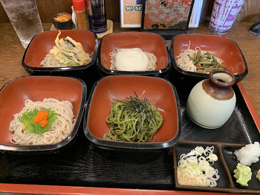 国道沿いのドライブイン的な構えで、これは美味しいかまずいかの両極端では、、、と勝手に推測して思い切ってランチに入ってみました。金曜日12時前でほとんど客がいなかったのが、続々と入店して、ほぼ満席状態でした。 他の方のコメント通り、メニューのバリエーションがすごすぎました。そば、中華、どんぶりもの、揚げ物系、、、と大変迷いましたが、真っ先にメニューに載っている蕎麦がおすすめなのかと思い、5色蕎麦にしました。 そこそこ時間かかって出てきたら、ものすごいボリュームで二人前くらいあるのでは、というくらいでした。肝心の蕎麦は、自分の好みの蕎麦ではなく、ツルツルタイプでした。特に茶そばはイマイチでした。 周りは常連客ばかりで、店の方と会話をされていたので、一体皆さん何を頼んでいるのか、ひっそり聞いていたら、誰一人蕎麦は注文しておらず、ラーメン系、揚げ物定食系が多かったようでした。 おそらくどのメニューもボリュームがすごいと思うので、食が細い方は注文時に確認され...