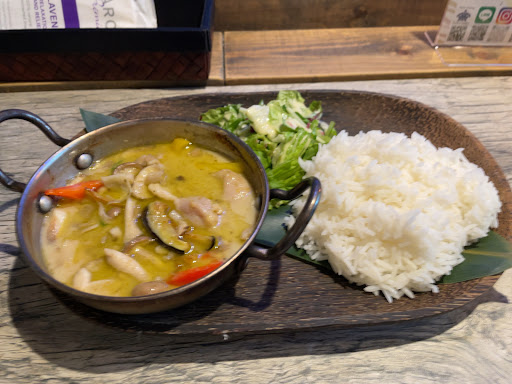 Read more【グリーンカレー】¥1,080税込 クレカ スゴく食べやすくて美味です。 スープの味は甘味が強く、ほんのりとした辛さが効いてきます。何より具材が豊富。しめじ、パプリカ、ピーマン、竹の子、じゃがいも、鶏肉。しかも野菜は全て小さくカットされているからとても食べやすい。器に使っている鉄鍋が熱々なので、最初は触れないように。