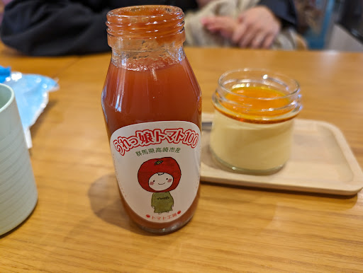 店内に陳列してある新鮮なお野菜(ミニトマト、きゅうり、ナス、トマトなど)、自家製ドレッシング(2種)、ショーケースに、袋に入ったnofuサラダ、手作りこんにゃく、なめらか自家製プリンなども販売してました。 新聞紙で作った、可愛い手提げ袋に買ったお野菜などを入れてくれました。