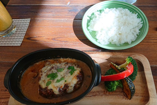 ハンバーグはキノコ等と煮込まれたソースに浸かって柔らかいお肉(牛100%?でしょうか?) が程良い大きさでしつこくない味付けで楽しめます。
