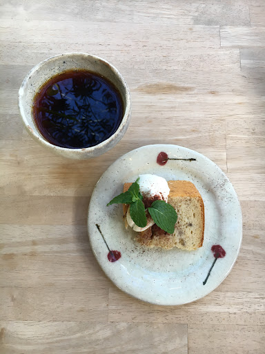 魚介お肉が乗ったおかずサラダと、生姜ご飯、スープ、デザート、ドリンクがついて1400円とリーズナブル。最初に頂いた帆立とキャベツときのこのクリームスープは出来立てでアツアツ。丁寧な味が口の中で広がり、間違いなく今までで一番おいしいスープでした。最初のスープの時点で、このお店来てよかったって思えます。笑 サラダはシンプルなドレッシングが掛かっており、お野菜本来の味が楽しめました。そして何よりも生姜ご飯がほんっーとーに。 とんでもなく美味しいのです。お米一粒一粒が生きています笑 もちもちしていてほろほろとした食感。ほんわりと漂う生姜の香り。生姜ご飯メインになのか、おかずサラダがメインなのか、頭が混乱します。美味し過ぎてどちらも無心で食べ進めてしまう。交互に食べるの難しいです笑 生姜ご飯を食べにこちらに伺う方多いのではないでしょうか、? デザートはランダム。何が来るのかワクワクします。 今回はバナナのシフォンケーキ。 シフォンケーキに感動したのは初めて。 生地がふわっふわでまるで空気のように消えてしまう。素朴なバナナの優しい甘さが引き立っていてこれまた美味しい、、、思わず口角上がりました。添えてあるクリームは甘過ぎずさっぱりとしていて食べやすい。 コーヒー、シロップ加えるか悩んだのですが そのままで全然いけます、むしろそのままがいいです。いやーな苦味一切ないです。かと言って薄くもない。とーっても柔らかな飲みごたえ。ケーキとの相性抜群です。