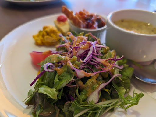 ランチメニューはパスタ・ピザ・お肉料理にキッズメニューとラインナップが豊富です。 私たちはパスタのセットをチョイス。内容は前菜とスープ、メイン、ドリンクです。ドリンクについてはランチのサービスドリンクなのに種類が豊富かも。 もちろん料理はすべて美味しくいただきました。