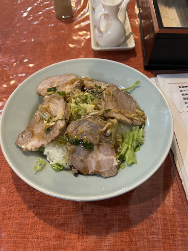 初めて伺いました。 夜に一人で行きましたが四人掛けのテーブルを案内して頂きました。先には2組でした。 メニューを見ますと、ラーメン、丼もの、いろいろあります。今日はチャーシュー丼にしました。 大盛りは150円の様です。餃子360円をつけてトータル1360円になります。 安くはありませんが、折角なのでお願いしました。