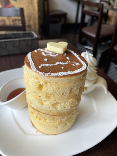 わたしは ★ホットケーキモーニング 680円+300円 ホットケーキ1枚 ヨーグルト 生クリーム メープルシロップ ドリンク付き