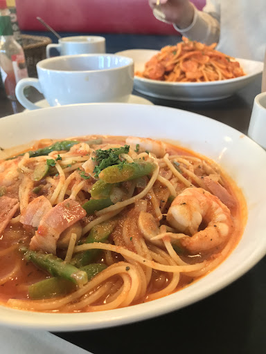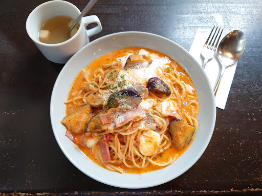 Read more夫と2人でランチに伺いました。 私は“エビとアスパラガスのパスタ”でトマトソースをランチセットで頼みました。ランチセットは専用メニューからメインを選んでサラダとスープor味噌汁とドリンクが付くメニューでした。パスタはニンニクがしっかり、でも程よく香りと味がついていて、玉ねぎなどの旨味が効いたトマトソースがもちもちとした食感の歯ごたえのある麺に絡んですごく美味しかったです!塩加減は濃いめが好きな人にはちょっと薄いかなと思うかもしれませんが、味の旨味がしっかりしていて私にはちょうど良かったです。思わず皿に残ったスープを飲み干してしまいました(笑)。最後にオレンジのサービスもいただきました。あと、最初に出されたお冷はレモン水でした。飲むたびスッキリしてハンバーグなどコッテリ系を頼んだ時に最適な組み合わせだなと思いました。 夫は“リングロードのナポリタン”を頼んでいました。少し分けてもらいました。ナポリタンの麺に味が付いているというようなイメージではなく、しっかりとケチャップがソースとして絡んでいるという印象でした。ケチャップの甘さが太めの麺と合わさって病みつきになる美味さでした!ナポリタンってこんなに美味しい料理だっけ!?とナポリタンを改める機会にもなったくらい(笑)。 デザートは今回頼みませんでしたが、アイスやケーキ、プリンなどがほとんどが自家製みたいです。このお店だけで味わえるデザートがたくさんありま...