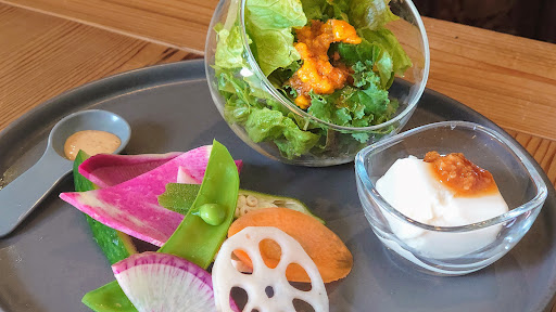 こちらは、危険な食品添加物や化学調味料などは使っていないので安心。 デザートもシュガーフリー、グルテンフリー、カゼインフリーで手作り。またミネラルたっぷりのお塩、安心安全な平飼い卵や、無農薬野菜を使った美味しい料理が食べられる。 抹茶アイスはなんと、甘酒で甘みを出しているのには驚き!!塩麹やドレッシングなども手作りで、色々と工夫されている。