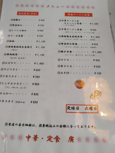 Read moreランチにカツがサクサクでとても美味しい「廣特製カツカレー」を食べに伺ってましたが最近は店主の息子さんが加わり待望の夜営業も復活!! 先ずはお一人様で伺いアジフライのおツマミでお酒を飲ませていただきましたが、アジがとてもふっくらして美味しく接客も良い感じでしたので後日、新年会に使わせてもらいました。息子さんは角上で働いていたとのことで事前にお刺身の盛り合わせを注文させていただきました。 お酒のおツマミに中華はもちろん、とても新鮮なマグロやブリ、水ダコ等々出していただきすべて美味しく大満足でした。 ランチも夜も美味しい~...