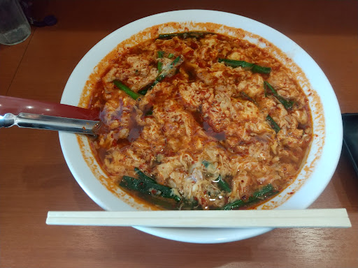 程なくして着丼! 器がデカくて良い。直径25cm程。 5辛はまあまあの辛さ。 汗が出ます。 器がデカいので量的には少なくありません。とき卵もいっぱい。 韓国麺は細いが、コシがある。 ▪▪▪うーん、問題はスープのダシ感が弱いことかな。 同じような麺類のニュータンタン麺や辛麺店より旨味が少ないかと。