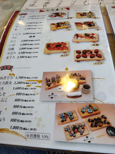 Read more高崎市の老舗です。現在の場所に移転後早くも数十年経ちましたが、店内は綺麗にされていて居心地良いです。2階には広間もあり、法事や宴会でも利用できます。平日はにぎりとちらしのランチもやってるので気軽にも行けます。私も時々お邪魔して特上にぎりをいただきます。ウニが高騰以来特上につかなくなってしまったのは残念ですが、豊洲直送のネタはとても新鮮で大きく、美味しくお腹も満たされ大満足です。寿司で有名な小樽で2回にぎり食べてますが、それに絶対負けてないと私は思いますよ。時間をかけてゆっくり味わうのが至福のひとときです。お寿司にはお吸い物とミニサラダが付きます。ランチには更に茶碗蒸し...