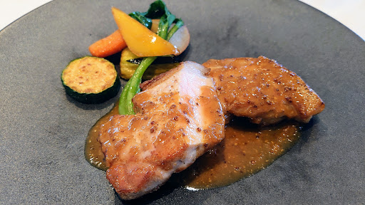メインは高知から取り寄せている魚、麦豚、+330円で牛のミスジステーキを選べます。今回の魚はサバでした。麦豚はマスタードソースでしっとり柔らかく、脂まで美味しかったです!
