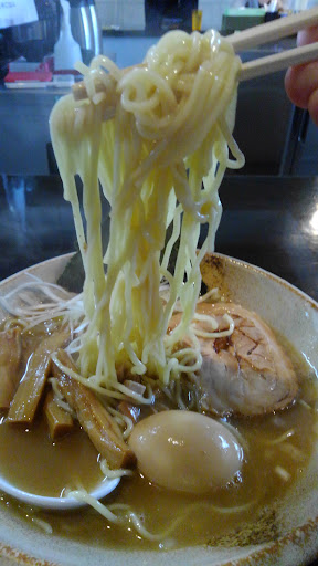Quite highly rated by almost all Japanese so I decided to go try it. Made a huge mistake ordering thin noodles. The thick pork broth soup is not creamy like most other tonkotsu ramen. instead, it is strong and intense, a little too salty and drown the thin noodles really fast. You get a soggy clump of noodles a few minutes into the meal, but you can get extra refill to relive the experience at a small price.