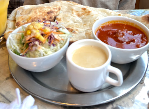 それ以外が甘めというのが、 ドレッシングはコールスローみたいな甘さ、日替わりのスープ(ミネストローネ)とコーンスープどちらも砂糖多めに使ったような甘さ、ナンも甘いです。チーズナンは蜂蜜ぽいような甘さでした。でもパリパリで美味しかった。食後のデザートでトロピカルヨーグルトみたいなのが出てそれもめちゃくちゃ甘かったです。