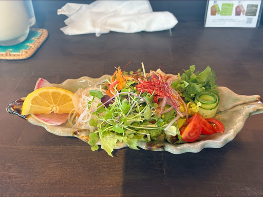 用事で妻と高崎駅近くに行く途中で、久しぶりにタイ料理屋さんに入ってみました。 外観はあまりタイ料理屋さんぽくはありませんが、ちょっとおしゃれな雰囲気。店内もちょっと変わった感じで、2人テーブルが2つ、4人と6人テーブルが1つずつ、それに二人用?カンター席が2つです。 13時前でしたが、すんなり入店しカウンター席に。 ランチメニューから二人ともAセット(10品目のヤムウンセンサラダ+ドリンク+メイン料理1品)にし、私はグリーンカレーとトマトチーズの合盛りカレーとパインラッシーに、妻はマッタイ(パッタイ?)とジンジャーラッシーで注文。