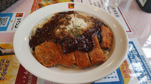Read more「シャンゴ風(S)」というスパゲッティをお願いした。名物というそれはやや太めのモチモチ系スパゲッティにカツが乗り、ミートソースがかけられたものだ。しかしその黒いミートソースは一般的なものではなく、デミグラスか、トマト感があるのでハヤシソースと思った方が近いかもしれない。そしてとても甘く、シナモンの香りも感じるのだ。その甘さゆえ八丁味噌のようだという感想もあるが、そういう印象ではなかった。しかし名古屋文化のあんかけスパ「ボローニャ」に通ずるなにかを感じた。甘いソースは総じて飽きる。そんな時はテーブルにある「ハバネロソース」を多めにかけると良い。香味野菜などのベースがしっかりしているようなので、この刺激があることで大人な雰囲気になる。地元メシということだが、確かに子供の頃から食べていたらきっとファンになっていたであろう、そんなヒトサラだ。 ※本店が混雑していてもこちらは空いている時があるようです。また、提供される量が全体的に多いので男性でも(S)サイズでちょうどいいと思います。他のお客さんの注文を聞いていると「シャンゴ...
