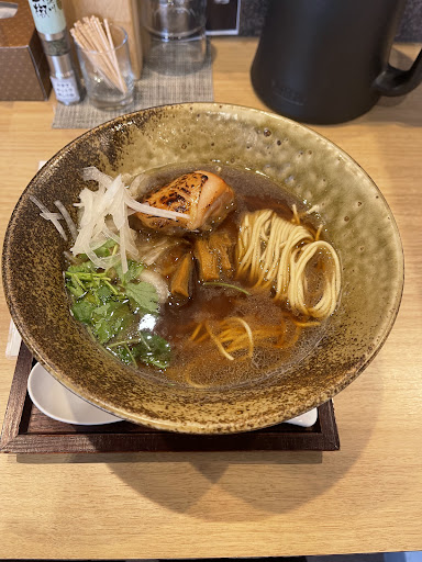 ずっと気になっていたから行ってみたいと主人が言うので初来店。 塩ラーメンは当たり外れが大きいので、基本的には確実に美味しかったお店でないと食べません。 ドキドキしながら注文し、2人で別のものを頼みました。 まず器や配膳が綺麗。 盛り付けも崩すのがもったいないくらい美しかったです。 私が食べたのは濃い口塩ラーメン 上 味もうまく表現できませんが塩のトゲトゲしさは無く魚粉の香りと塩の甘さがとても美味しかったです。