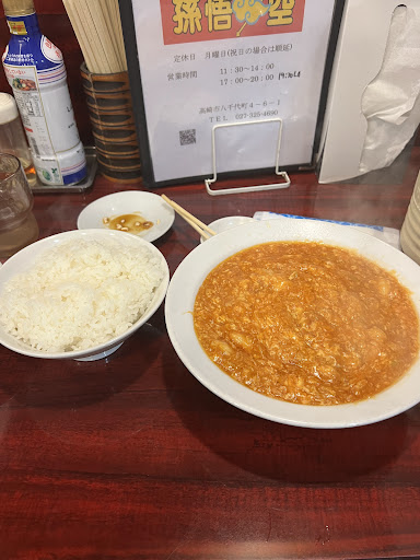 スープの蓮華を使い食べます。すくうと海老がたくさん入ってます。かなり熱くご飯にかけて食べます。 エビチリの量が多くご飯があっという間に無くなりました。 ご飯をお代わりしたかったのですが、残念ながらもう無いとのこと😆