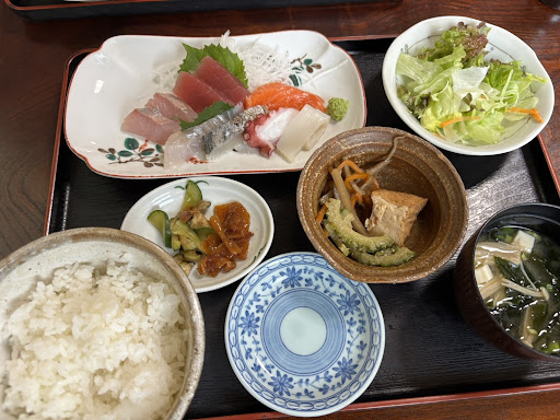 Read more座敷には座椅子が有り脚が痺れず助かります。ワンオペのお店ですから、のんびり食事ができる時にこちらの美味しい食事を楽しみましょう。ワンオペですが丁寧な対応ですよ。そしてお魚屋さんですから、肉系より魚類系のメニューがおすすめです。肉系が駄目ではありません、せっかくこちらにいらした人はお魚を楽しみましょう😊 初回は最近煮魚定食が食べられるお店が少なく煮魚定食にしました。ランチには、味噌汁、漬物、サラダ、小鉢、食後の珈琲も付きます。漬物、小鉢の煮物美味しいです。サラダの代わりに海藻や酢の物が付くと尚良いですね♪ 2回目の今日は魚彩丼(ちらし寿司)をいただきました。具がいっぱいですら、酢飯はおおもりをお勧めいたします。 3回目本日の煮魚定食は鯖です。焼魚も鯖のようなので、良い鯖が仕入れられたようです。小鉢の煮物もとても美味しくいただきました。12:00には満席です。ワンオペなの...